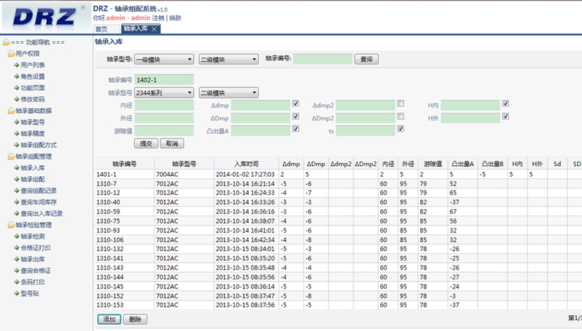 - 軸承組配管理:管理軸承組配的整個過程,包括軸承入庫,軸承組配,軸承出庫等